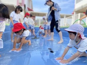 年長さんがプール掃除を頑張ってくれました!!